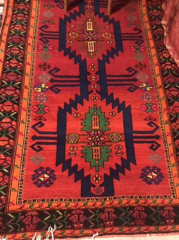 salam. Qazax xalçasıdır, təbii əl ilə toxumadır. Antik xalçadır. 28 yaşı var. - Tip: dekorativ döşəmə xalçası - Ölçü: təxminən 2,5 x 1,3 m (şəkilə əsasən) - Dizayn: mərkəzdə romb/mihrabvari medaly...