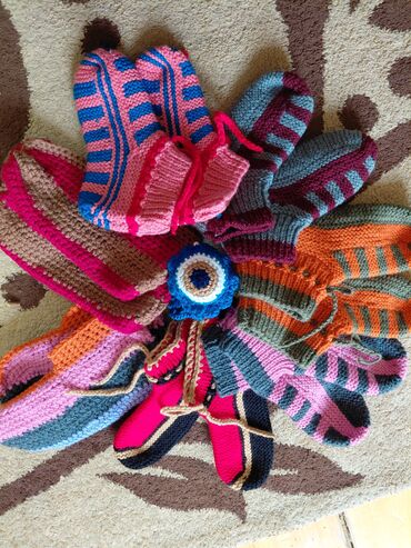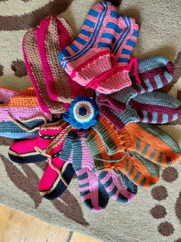 Əl toxuması yun corab və ev çəkmələri dəsti