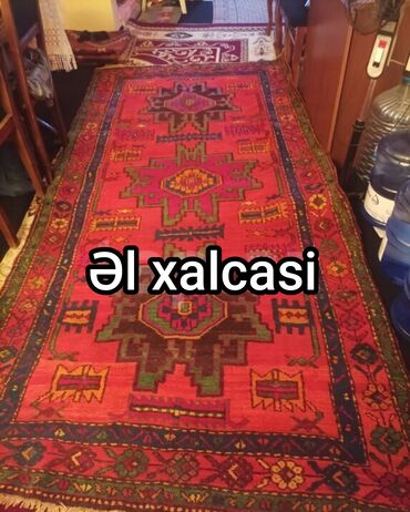 Əl toxuması xalçalar dəsti - Növ: Şərq üslublu əl toxuması xalçalar - Sayı: Şəkillərdə bir neçə fərqli naxış və ölçü - Material: Təbii yun iplik, pambıq saçaq - Rəng palitrası: Bordo, qırmızı, tün...