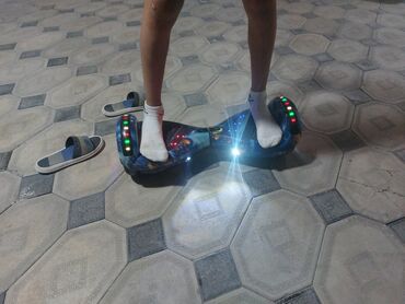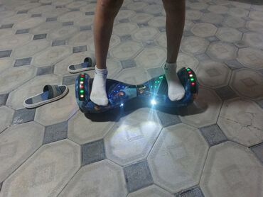 Özünü tarazlayan elektrikli skuter (hoverboard) - Korpus: kosmos/qalaktika naxışlı rəngli dizayn - Platforma: sürüşməyə qarşı iri rezin ayaqaltılar - Təkər ölçüsü: təxmini 6.5–8 düym (klassik şəhə...