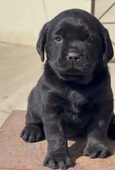 Balaların fotolarında həm bir neçə günlük, həm də daha irəliləmiş yaş mərhələsi görünür; qara bala nümunəsində tipik labrador sifəti və möhkəm bədən quruluşu aydın seçilir.
