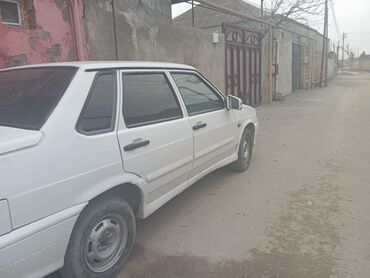 Lada Samara sedan, ağ rəng. 4 qapı, arxa spoylerli kuzov. Ön duman