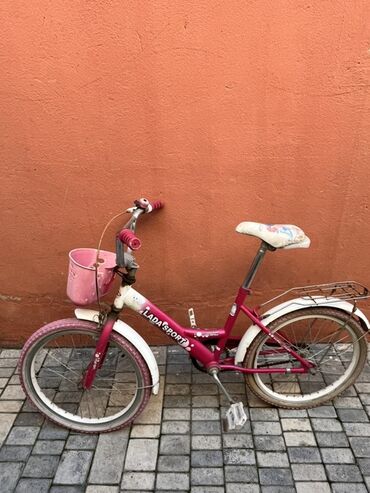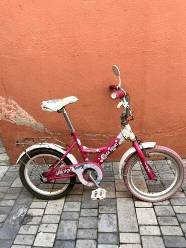 Uşaq velosipedi – Lada Sport / Super Sport dizaynı - Rəng: çəhrayı-ağ, çiçək və pəri temalı naxışlar - Təkərlər: 16" ölçülü (təxmini), çəhrayı halqalar, şinlər dişli - Əyləclər: ön çəngəldə qol əy...