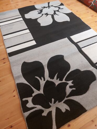 Müasir dizaynlı xalça yuduzdurmaq lazimdir ona gore ucuz satilir hec bir prablemi yoxdu - Rənglər: boz, krem və qara tonlarda - Naxış: həndəsi, konsentrik kvadrat və düzbucaqlı motivlər - Forma: dü...