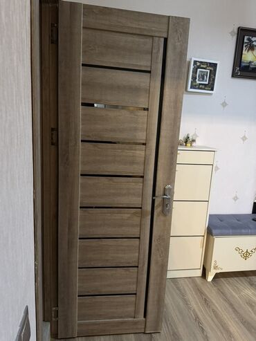 İç qapı – laminat finişli, taxta teksturalı, boz-qəhvəyi tonlarda.
