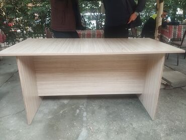- Material: Ağac teksturalı laminat/MDF - Tip: Ofis/iş masası - Ölçü təxmini: Geniş iş səthi, düzbucaqlı forma - Rəng: Açıq ağac (beji/şam tonları) - Çəkilə bilən siyirmələr: 3 ədəd, metal tutacaql...
