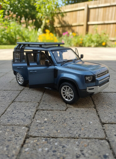 Metal model avtomobil – Land Rover Defender tərzində oyuncaq - Miqyas: təqribi 1:18 - Gövdə rəngi: ağ/qaranlıq tavanlı, detalı salon - Açılan elementlər: ön kapot, bütün qapılar, arxa baqaj qapısı...