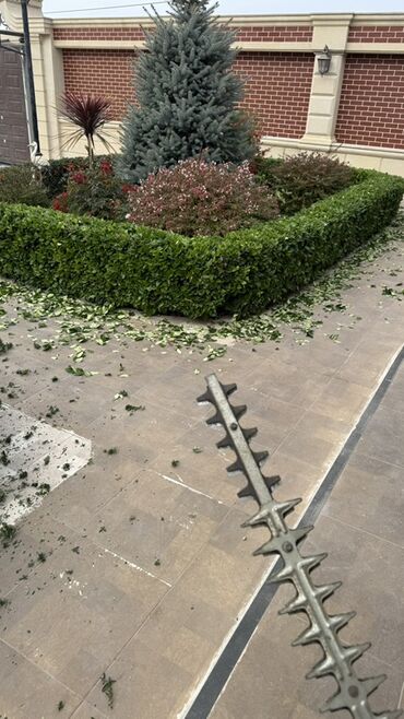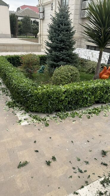 - Hündürlüyü və formasından asılı olmayaraq, dekorativ kolluqların, çəpər yaşıllıqlarının və iynəyarpaqlı ağacların (thuja, küknar və s.) peşəkar şəkilləndirilməsi