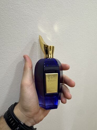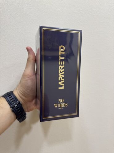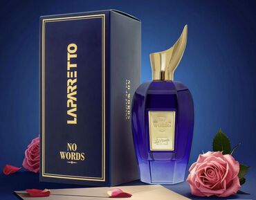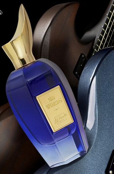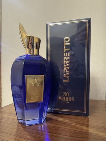 - Qutu: tünd mavi, qızılı haşiyəli və “NO WORDS” yazılı premium qablaşdırma