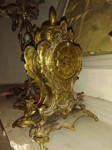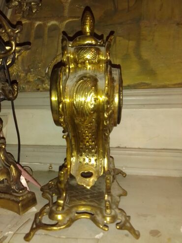 Antikvar sovet kamin saatı "yantar"-180 azn.Korpusu bürüncdür,5 kq olar çəkisi..Kvars.İşlək və əla vəziyyətdə.Hündürlüyü 35 sm.Sferblat diametri 10 sm.şamdanlar cütü 90 azn.
