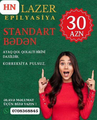 - Standart bədən – 30 AZN. Ayaq, qol, qolaltı, bikini daxildir. Korreksiya pulsuz.