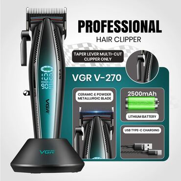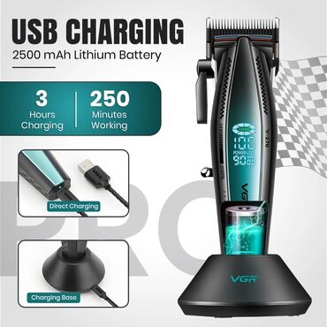 VGR V-270 Kişilər üçün Professional Metal Kordon/simsiz Saç Kəsmə Makası 3 saatlıq şarjla 250 dəqiqəyə qədər istifadə imkanı təqdim edir və həm kabel, həm də simsiz işləmə üçün uyğundur.