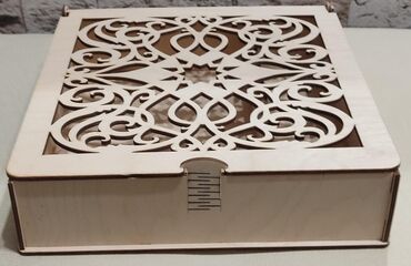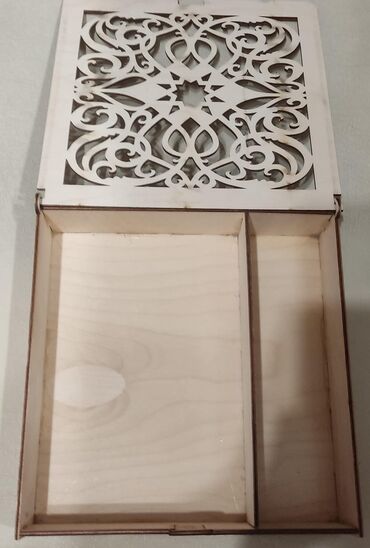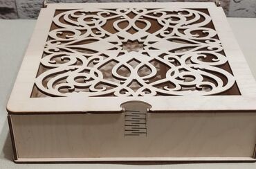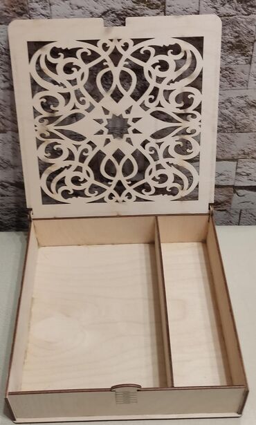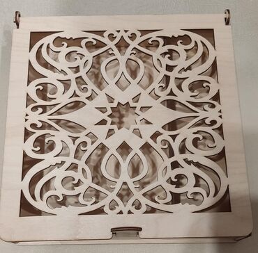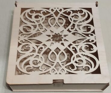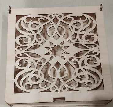 - Material: təbii ağac (kontrplak), lazer kəsim naxışlı qapaq