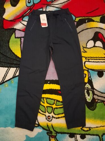 Oğlan üçün qara rəngli baggy jeans şalvar - Model: rahat “baggy” kəsim - Material: denim (uzanan elastik bel) - Rəng: tünd qara, yüngül solğun effekt və dekorativ cırıqlar - Bağlanma: iplə yığma (...