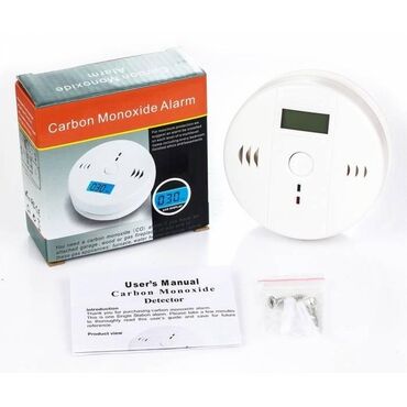 - Qutuda: CO alarm cihazı, istifadəçi təlimatı, montaj üçün vintlər və dübellər