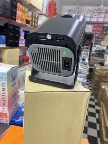 Mini proyektor Xüsusiyyətlər: - Korpus: Kompakt, portativ dizayn - Girişlər: 1x HDMI, 1x USB (fleş yaddaş/mediadan oxuma üçün), 3.5 mm audio çıxışı - Soyutma: Hava ventilyasiya barmaqlıqları - Qur...