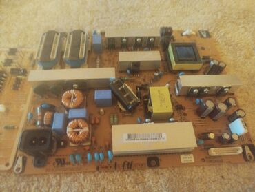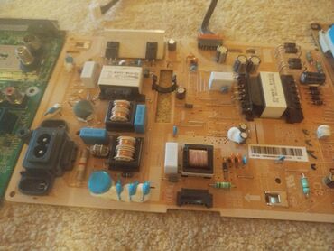 - Şəkillərdə müxtəlif modullar daxil olmaqla TV elektronika lövhələri görünür: əsas (main) board, güc təchizatı (power supply) board və əlaqəli modul/konnektorlar.