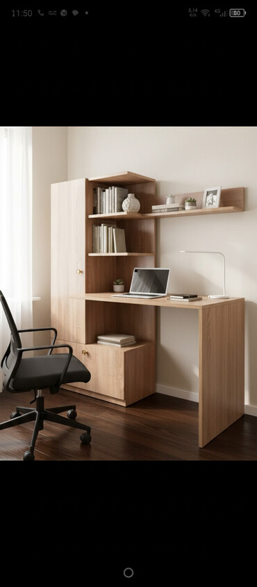 - Düz xətlər və minimalistik dizayn; ev ofisi, şagird otağı və iş guşəsi üçün uyğundur.