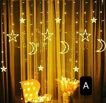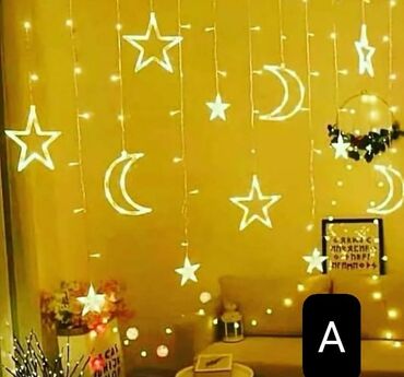 - Dizayn: şaquli asma “pərdə” string-işıqlar; iri konturlu ulduz və ay fiqurları, əlavə kiçik ulduzlar; alternativ variantda iri akril qar dənəsi fiqurları