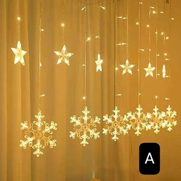 LED dekorativ işıq pərdəsi – ulduz, ay və qar dənəsi fiqurlu