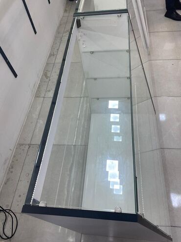 Mağaza üçün şüşə vitrin stendi - Material: temperli şüşə panellər, alüminium/profil karkas - Ölçü: təxmini uzunluq 95cm 1.20 cm dərinlik 45–50 sm, hündürlük 90–100 sm (şəkillərə əsasən) - Ön, yan ...