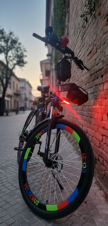 Gecə gəzintiləri və şəhər içi istifadə üçün yüksək görünürlük təmin edən, aksesuarlarla zəngin bir velosiped.