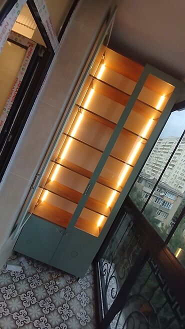 - Məkan: lojiya/balkon və ya qonaq otağı üçün uyğun dar və hündür vitrin