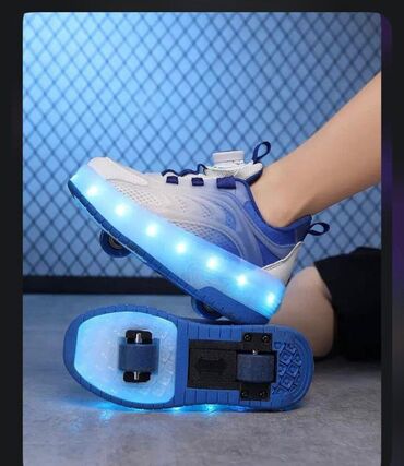 - LED işıqlı təkərli idman ayaqqabısı. Aşağı hissədə mavi LED işıqlar, yanlardan düymə/klipslə idarə olunan çıxarılan/qatlanan təkər mexanizmi. Nəfəsalan mesh üst material, kordon bağlama, burun və daban hissəsində möhkəmləndirmə, işıqlı altlıq.