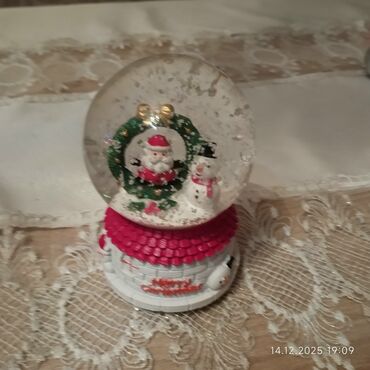 - Dizayn: Şüşə kürənin içində Şaxta baba, qar adamı və yaşıl şam çələngi kompozisiyası. Aşağı hissəsi “Merry Christmas” yazılı dekorativ baza ilə.