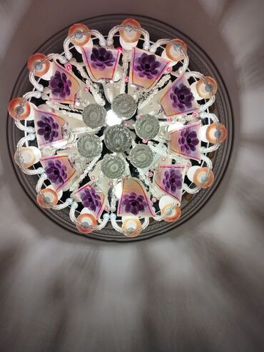 - Elementlər: Perimetri boyunca dekorativ abajurlar, mərkəzdə sferik kristal dəstəsi