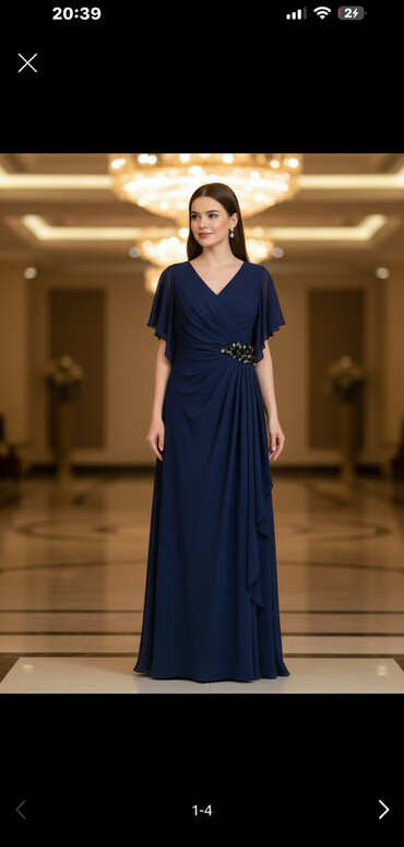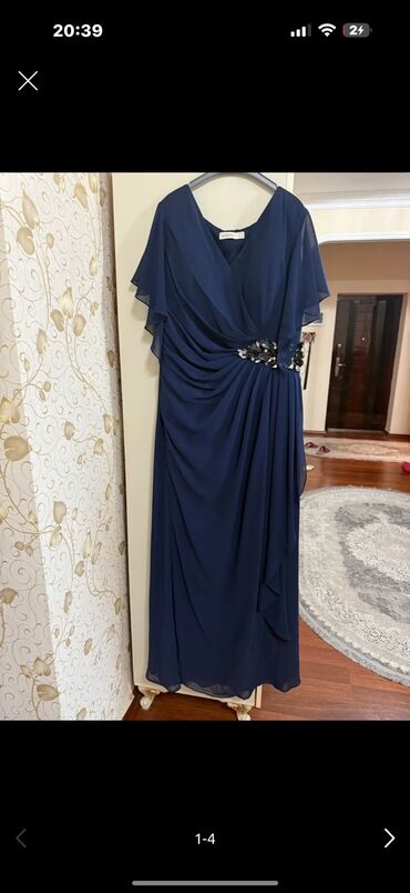 Açıq Göy rəngli zərif ziyafət/gecə donu. 300 azna Elatusda tikilib, 1 dəfə geyinilib. - Model: Uzun, A-kəsim ətəkli, dairəvi yaxalı - Material: Şifon və tül əsaslı, üstü bütövlükdə atlas effektli ...