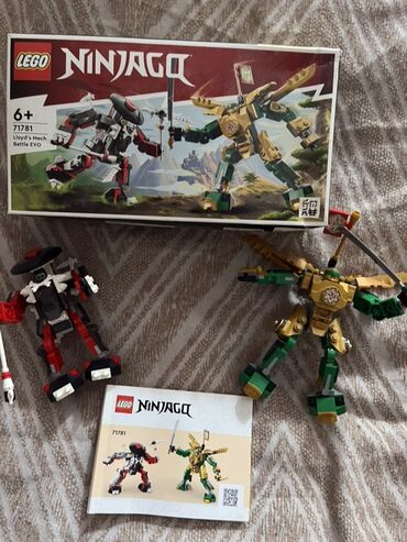 QızılıLEGO Ninjago Lloyd's Mech Battle EVO dəsti. Dəstə iki meçi birləşdirmək üçün təlimatlar və detallar daxildir. Yaşıl və qızılı rənglərdə olan Lloydun mexanizmi və qırmızı və qara rənglərdə olan digər döyüş mexanizmi. İki mini fiqur da daxildir: Lloyd və döyüşçü.