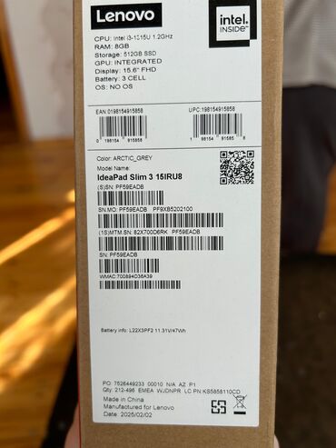 - Model adı/etiket: IdeaPad Slim 3 15IAB8 (aşağıdakı lövhədə qeyd)
