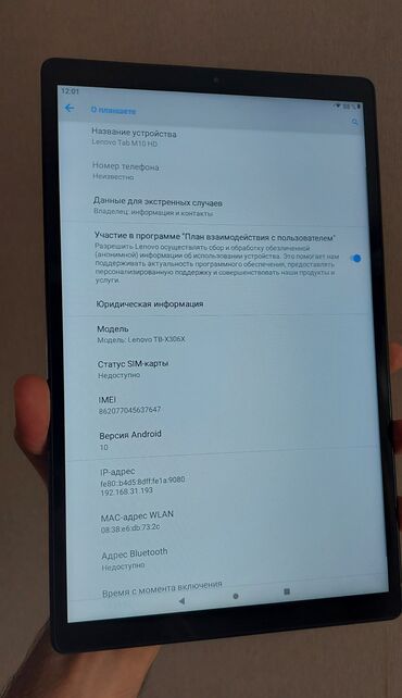 Lenovo M10 FHD Plus (TB-X606F) Yaddaş: 128 GB Qutusu: var Şarj cihazı: var Problemsiz tabletdir.Tam koplekt verilir. Stereo dinamiki var.Təmirdə olmayıb. Whatsapp aktivdir.