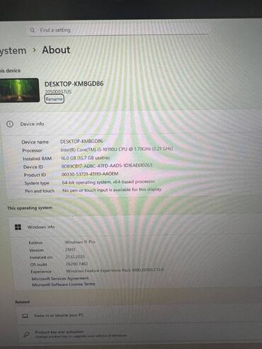 Ekran Ölçü: 15.3″ Panel tipi: IPS Çözünürlük: WUXGA — 1920 × 1200 piksel Nisbət: 16:10 Parlaqlıq: ~300 nit (orta sinif) Rəng gamut: sRGB ~45–60% Anti-glare: Var (parlama əleyhinə) 🔥 Prosess...