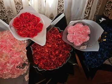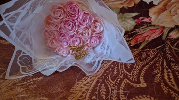 Məhsul: Gül dəstəsi - Rəng: açıq-çəhrayı qızılgüllər - Tərtibat: ağ