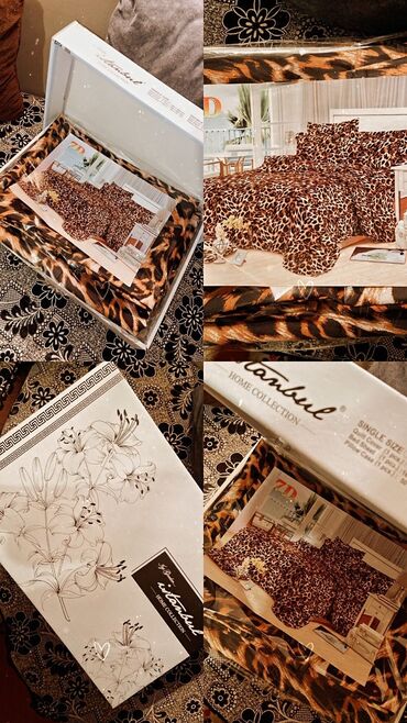 Qeyd: Şəkillərdə həm qutulu məhsul, həm də yataqda qurulmuş leopard naxışlı komplekt göstərilir.