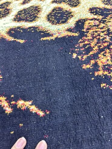 Xalça – əl toxuması, şərq üslublu - Forma: düzbucaqlı, uzun - Təxmini ölçü: təxminən 1,2–1,5 m en, 2,5–3 m uzun (şəkilə əsasən) - Material: yundan toxuma - Rəng palitrası: tünd qara, narıncı, tünd ...