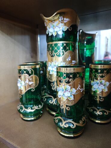 1 yaşıl güldan50₼, qrafin+6 bakal 100₼ Şəffaf bagema qrqfin+6 bakal 90₼