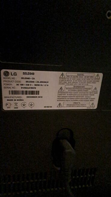 LG 32LD310 – 32 düym LCD televizor - Ekran: 32" (81 sm) LCD - Model: 32LD310-TA - Güc: AC 100–240V, 50/60 Hz, 1.5A - İstehsal: Sentyabr 2010, Koreyada istehsal olunub - Korpus: ön panel qara, arxa...