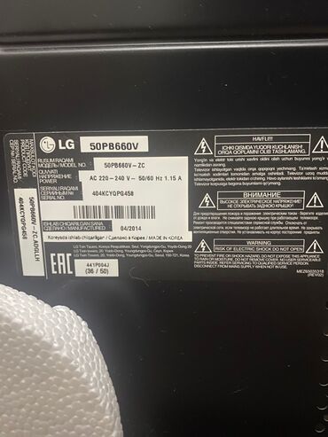 LG 32PC5RA plazma televizor - Ekran: 32 düym - Model: 32PC5RA-TD (etiketdə göstərilir) - Enerji girişi: AC 100–240V, 50/60Hz, 2.0A - İstehsal: Oktyabr 2008, Koreyada istehsal - Panel tipi: Plazma ...