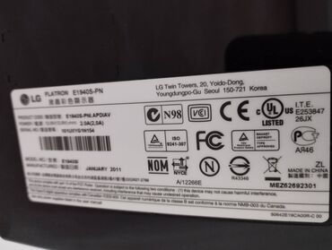 LG Flatron E1941S-BN monitor - Ekran diaqonalı: 18.5" - Panel: LED, LG Flatron seriyası - Model nömrəsi: E1941SX (etiketdə: FLATRON E1941S-BN) - Giriş gərginliyi: AC 100–240V, 50/60Hz, 0.8A - Ener...