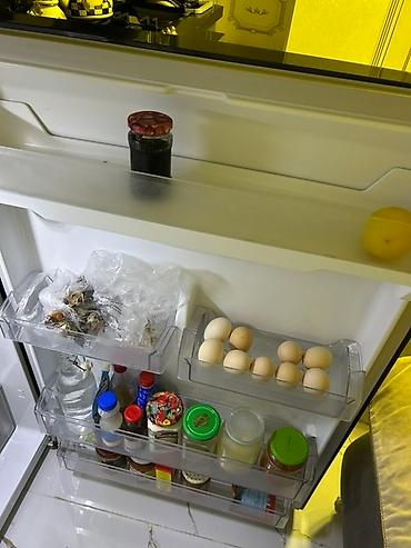 - Daxili həllər: Geniş qapı rəfləri, yumurta üçün ayrıca bölmə, sous/şüşə və bankalar üçün dərin rəflər. Soyuducu bölmədə şəffaf plastik çekmecələr və rəflər.