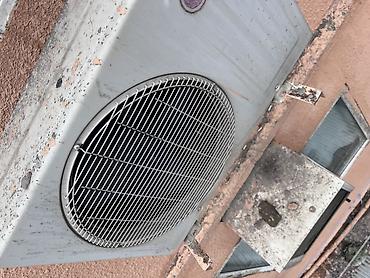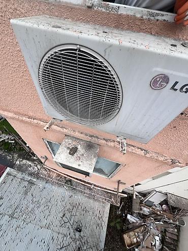 LG split kondisioner sistemi - Brend: LG - Növ: Divara quraşdırılan split kondisioner (daxili və xarici blok) - Xarici blok: böyük ölçülü ventilyatorlu kompressor bloku, LG loqolu - Daxili blok: d...