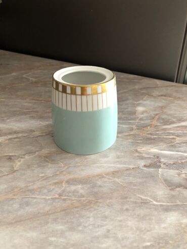 Təsvir: - Şirniyyat və qəlyanaltılar üçün üç bölməli porselen qablar dəsti. - Hər qabda mərkəzdə maral təsvirli oval medalyon, yaşıl fon üzərində qızılı naxışlar. - Orta hissədə daşımaq üçün qızılı...