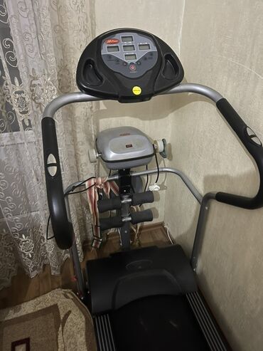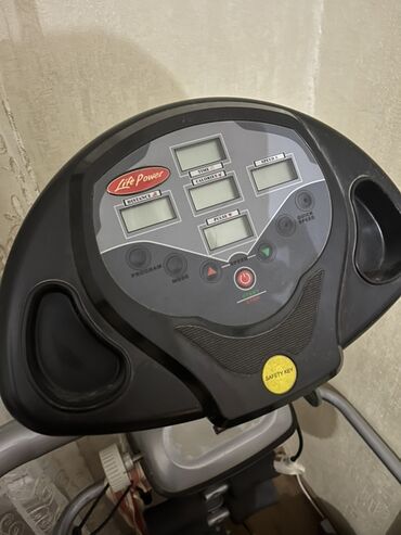 - Elektrikli treadmill, ön paneldə LCD göstəricilər: məsafə (Distance), vaxt (Time), kalorilər (Calories), sürət (Speed), nəbz (Pulse).