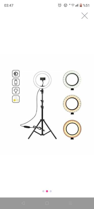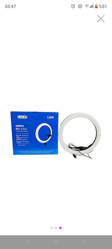 - Qutulu komplekt: LJJ-30 halqa işıq, tənzimlənən stativ, telefon tutacağı, kabel və idarəetmə modulu