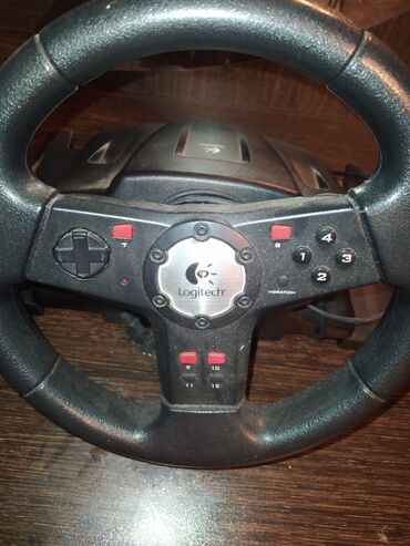 - Tam ölçülü sükan qurğusu, mərkəzdə Logitech loqosu
