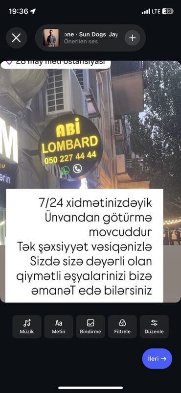 - 7/24 fəaliyyət göstərən lombard xidməti