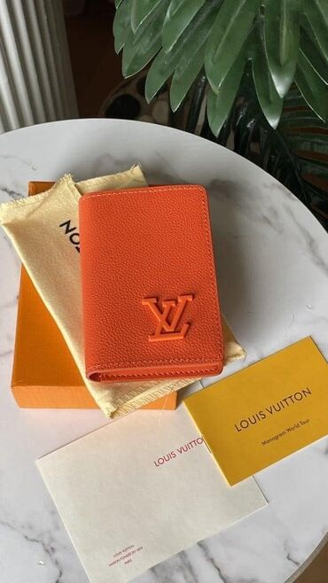 Təbii dəriLouis Vuitton narıncı rəngli dəri kartlıq/cüzdan